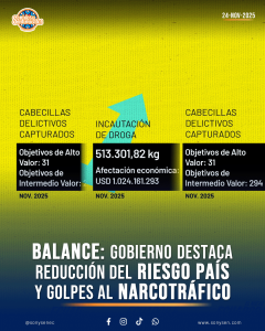 2 min de lectura Balance de gestión 2025: Gobierno destaca reducción del Riesgo País y golpes al narcotráfico