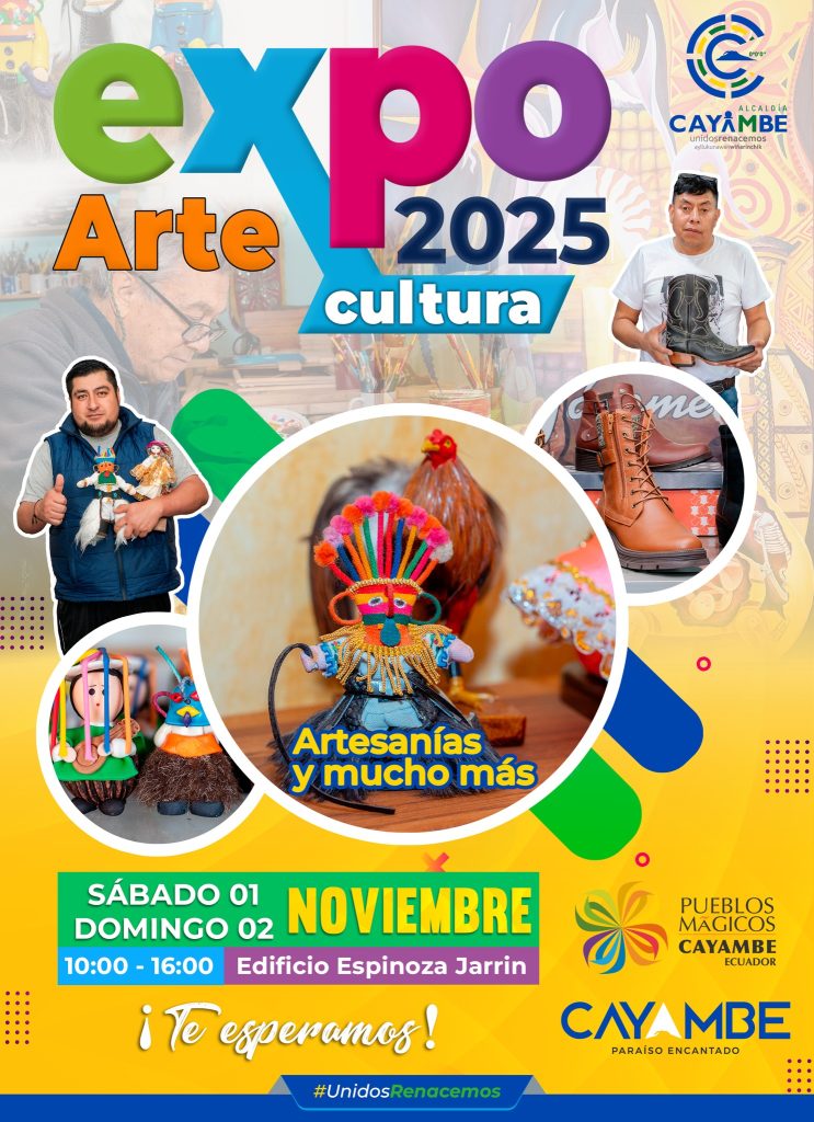 Expo Arte y Cultura 2025: Del sábado 1 al domingo 2 de noviembre, de 10:00 a 16:00 en el Edificio Espinoza Jarrín, podrás admirar y adquirir artesanías y mucho más. Una ventana al talento local ideal para llevarte un recuerdo auténtico.